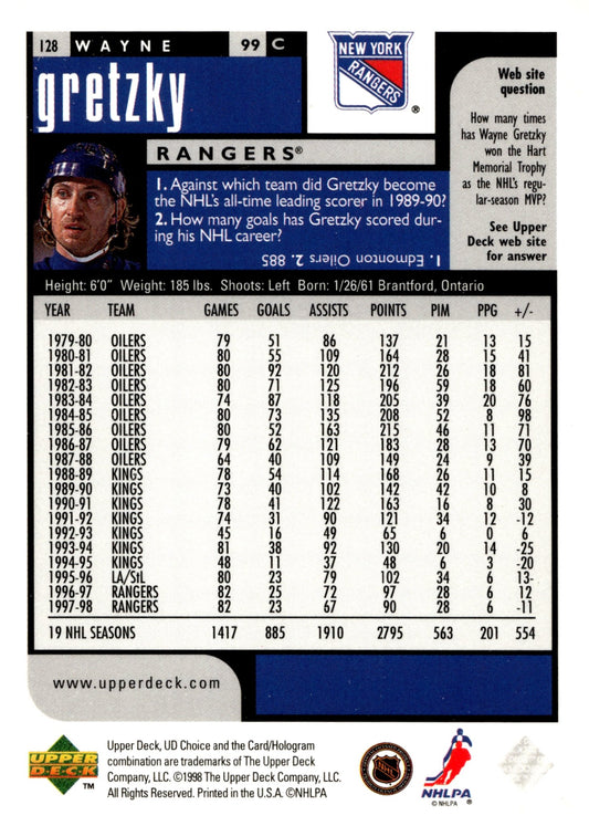 Wayne Gretzky 1998-99 Upper Deck Choice #128