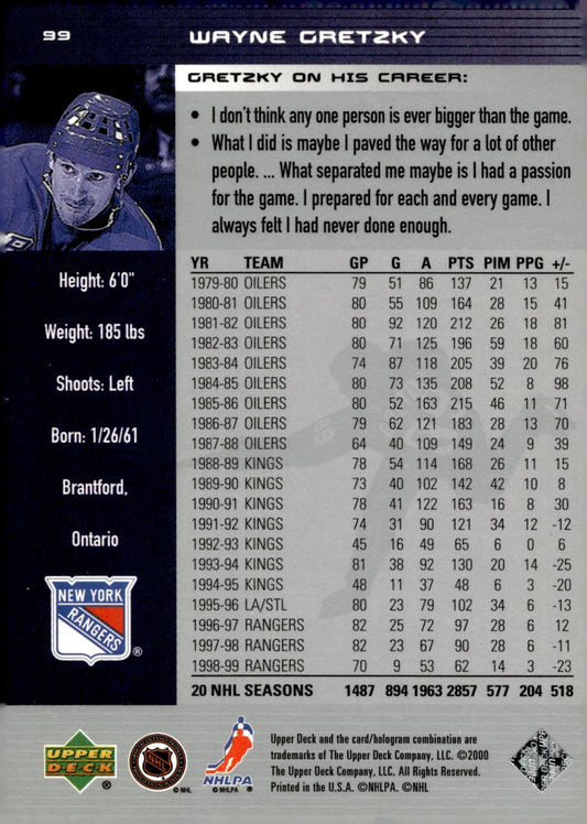 Wayne Gretzky 1999-00 Upper Deck MVP #219
