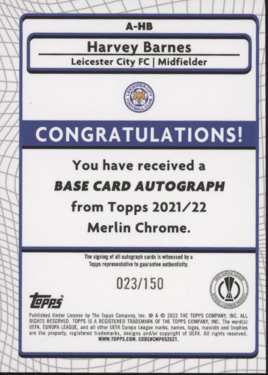Harvey Barnes 2022-23 Topps Merlin UEFA CL Speckle Refractor Auto 023/150 #A-HB