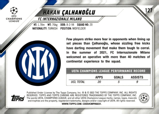 Hakan Calhanoglu 2021-22 Topps Chrome UCL Purple & Gold Starball Refractor #127