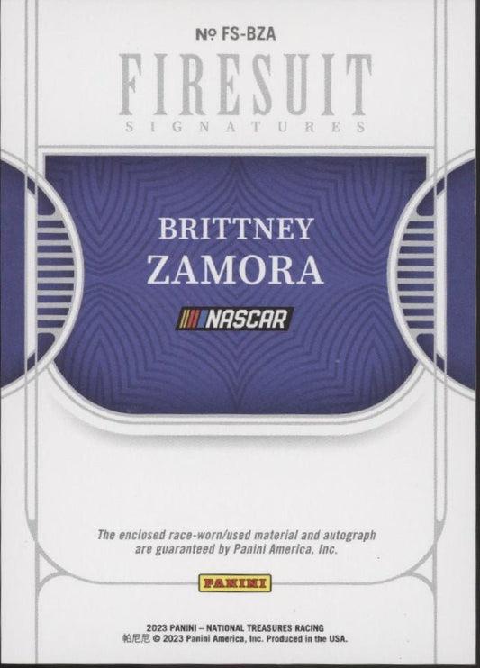 Brittney Zamora 2023 National Treasures Firesuit Signatures Swatch Auto 13/49