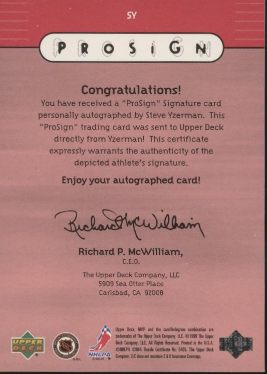 Steve Yzerman 1999 Upper Deck MVP Pro Sign Auto #SY