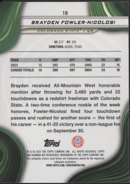 Brayden Fowler-Nicolosi 2024 Bowman's Best University Blue Refractor 011/149 #10