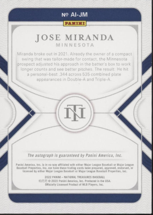 Jose Miranda 2022 Panini National Treasures Apprentice Ink Auto 39/99 #AI-JM