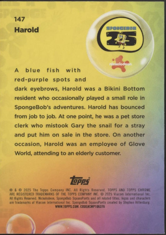 Harold 2025 Topps Chrome Spongebob Squarepants Blue Refractor 112/150 #147
