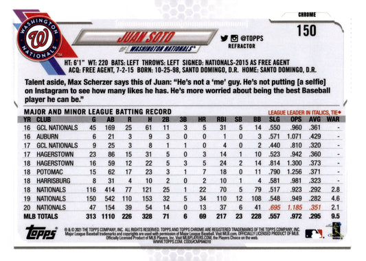 Juan Soto 2021 Topps Chrome Sepia Refractor #150