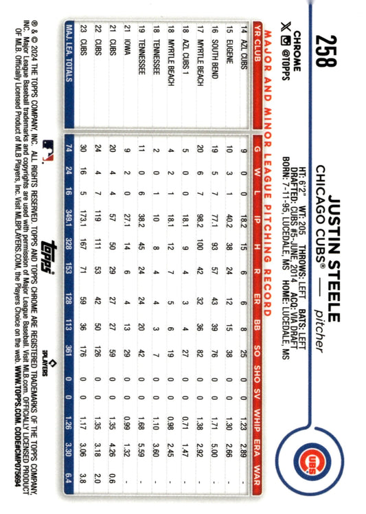 Justin Steele 2024 Topps Chrome Aqua Lava Refractor #258