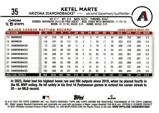 Ketel Marte 2024 Topps Chrome Blue Sonar Refractor 102/125 #35