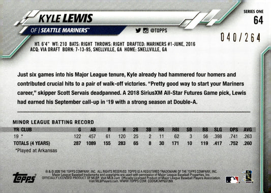 Kyle Lewis 2020 Topps Series 1 RC 040/264 #64