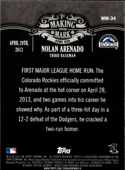 Nolan Arenado 2013 Topps Marking Their 1st Home Run RC #MM-34