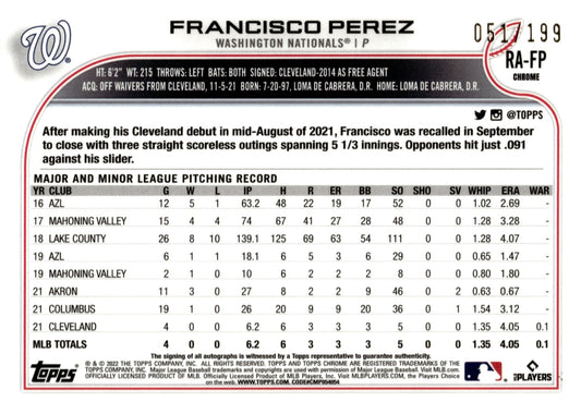 Francisco Perez 2022 Topps Chrome Aqua Wave Refractor Auto 051/199 #RA-FP