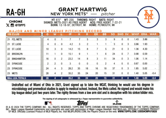 Grant Hartwig 2024 Topps Chrome RC Auto #RA-GH