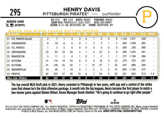 Henry Davis 2024 Topps Series 1 Gold Foil RC #295