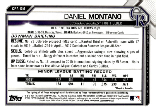 Daniel Montano 2021 Bowman Chrome Prospects Auto #CPA-DM