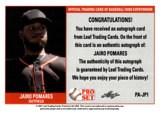 Jairo Pomares 2021 Leaf Pro Set Pink Refractor RC Auto 20/20 #PA-JP1