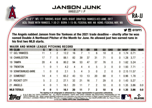 Janson Junk 2022 Topps Chrome RC Auto #RA-JJ