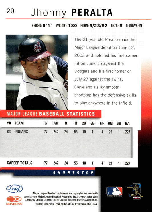 Jhonny Peralta 2004 Leaf Second Edition Auto #29
