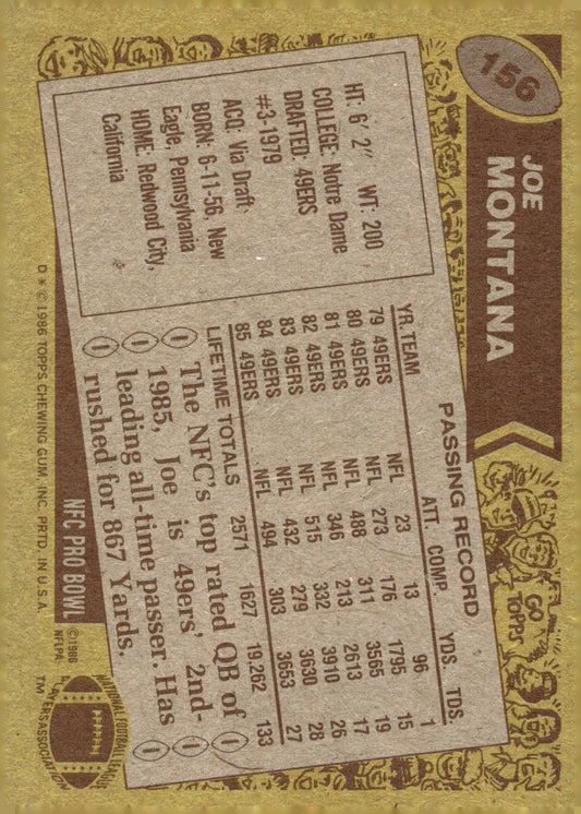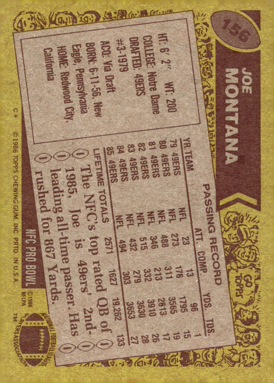 Joe Montana 1986 Topps #156 San Francisco 49ers #3