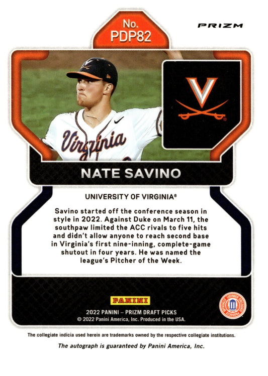 Nate Savino 2022 Panini Prizm Draft Picks Prizm Auto #PDP82
