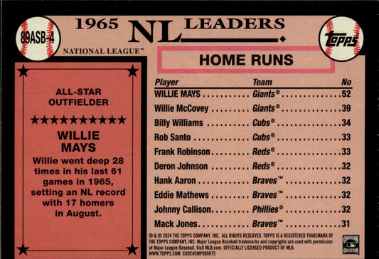 Willie Mays 2024 Topps Series 2 All Star Silver Foilboard #89ASB-4