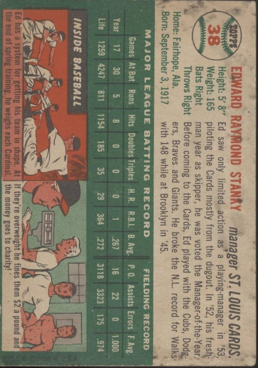 Eddie Stanky 1954 Topps #38 St. Louis Cardinals VG