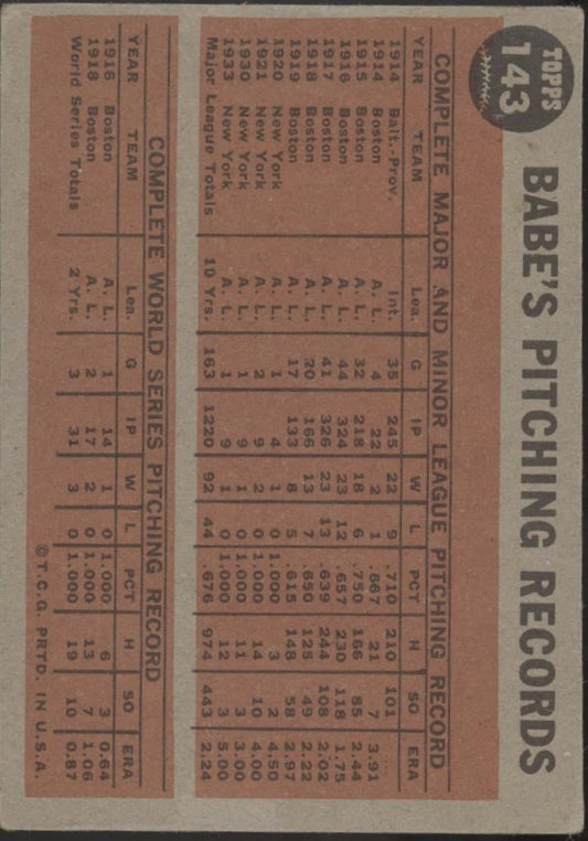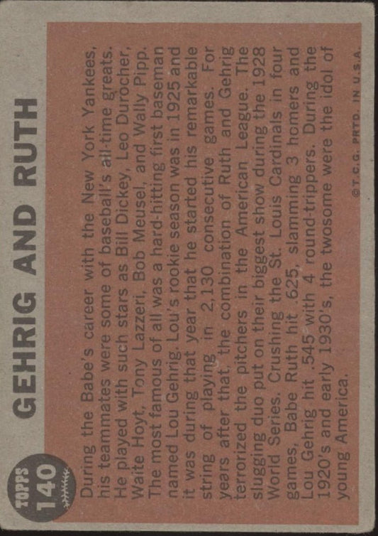 Gehrig & Ruth 1960 Topps #140 New York Yankees VG