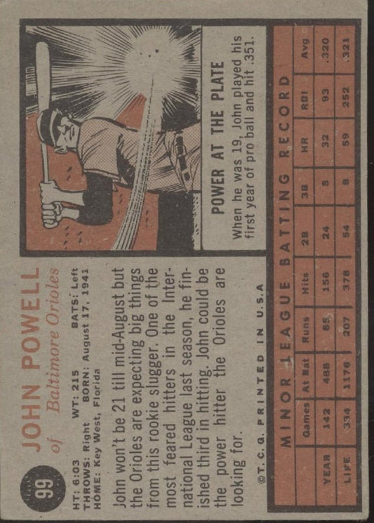 John Powell 1962 Topps RC #99 Baltimore Orioles VG #2