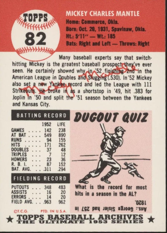 Mickey Mantle 1991 Topps Archives '53 #82 #2