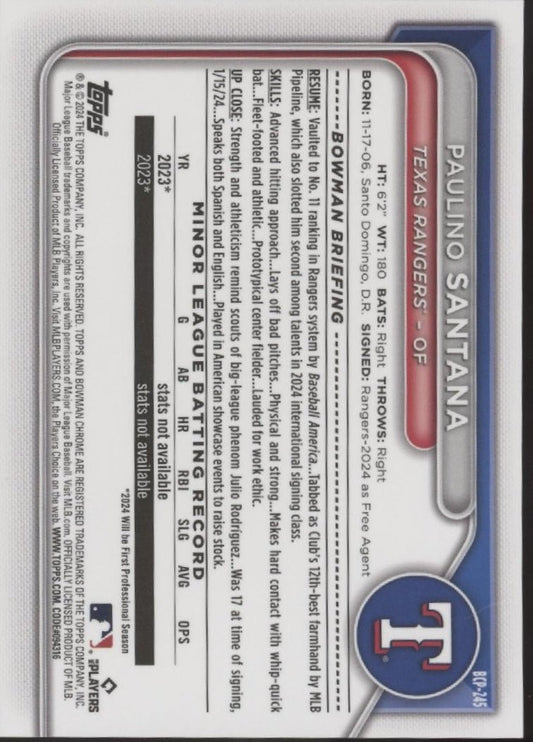Paulino Santana 2024 Bowman Chrome Mojo Refractor #BCP-245