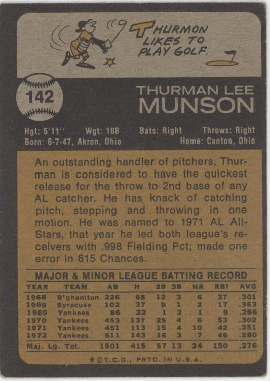 Thurman Munson 1973 Topps #142 New York Yankees VG #1