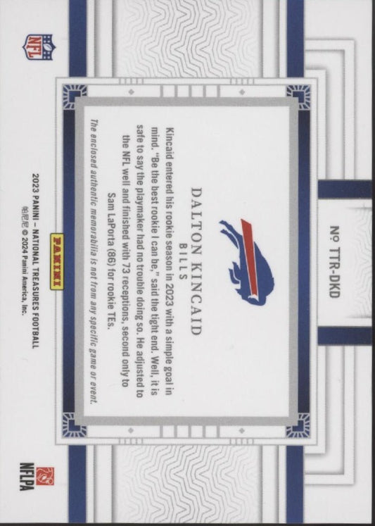 Dalton Kincaid 2023 Panini National Treasures Tremendous Treasures Swatch RC /25