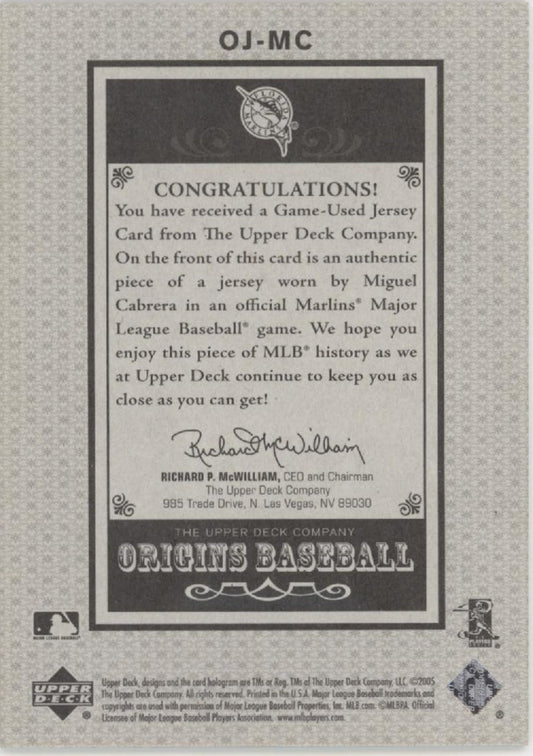 Miguel Cabrera 2005 Upper Deck Origins "Old Judge" Swatch #OJ-MC