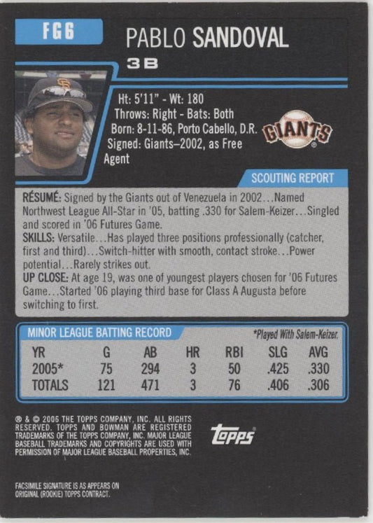 Pablo Sandoval 2006 Bowman Swatch #FG6