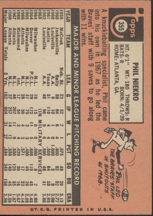 Phil Niekro 1969 Topps #355 Atlanta Braves VG