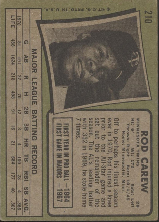 Rod Carew 1971 Topps #210 Minnesota Twins VG