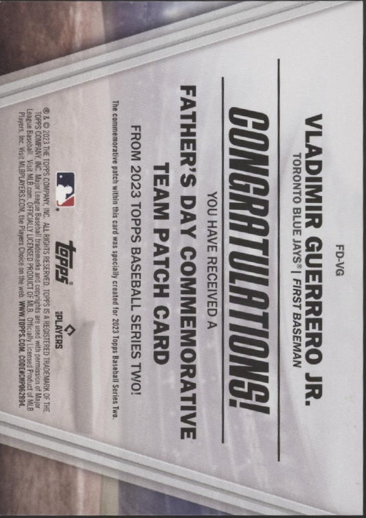 Vladimir Guerrero Jr. 2023 Topps Series 2 Father's Day Commemorative Patch Card