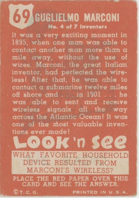 Guglielmo Marconi 1952 Topps Look 'n See #69 VG