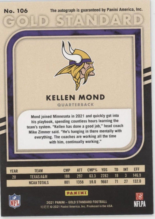 Kellen Mond 2021 Panini Gold Standard RC Auto 018/149 #106