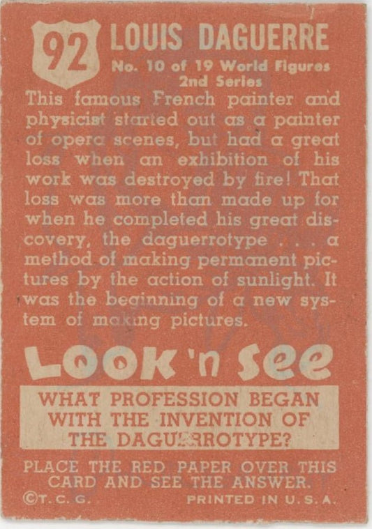 Louis Daguerre 1952 Topps Look 'n See #92 PR #2