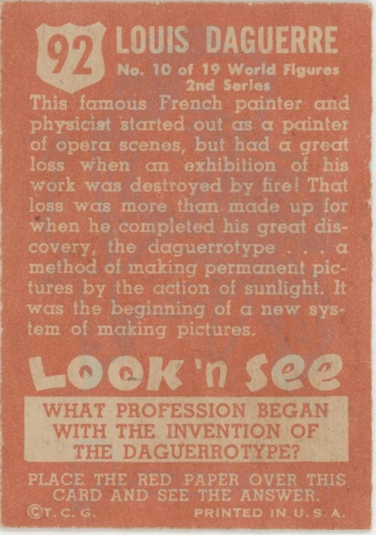 Louis Daguerre 1952 Topps Look 'n See #92 PR #1