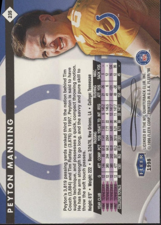 Peyton Manning 1998 Fleer Tradition RC #235