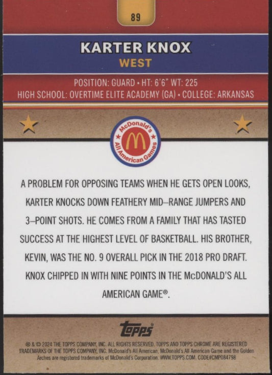 Karter Knox 2024 Topps Chrome McDonald's All American Aqua Wave Refractor 16/199
