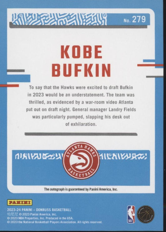 Kobe Bufkin 2023-24 Panini Donruss Rated Rookie Pink Laser RC Auto #279