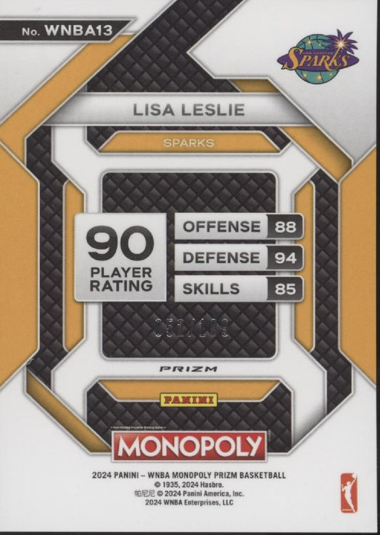 Lisa Leslie 2024 Panini WNBA Monopoly Prizm Light Blue Prizm 052/199 #WNBA13