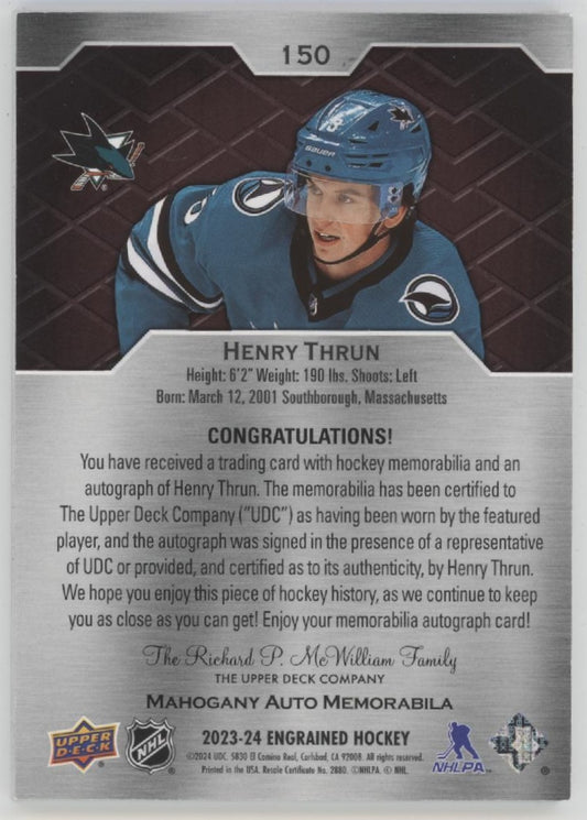 Henry Thrun 2023-24 Upper Deck Engrained Mahogany Swatch RC Auto 24/49