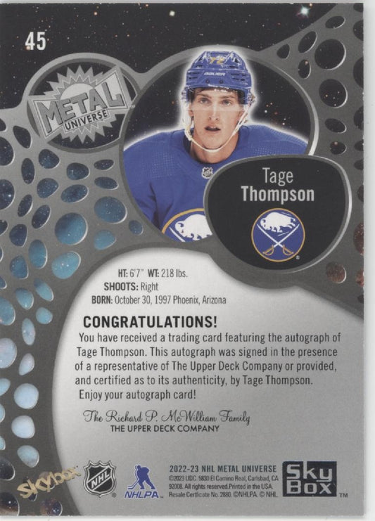 Tage Thompson 2022-23 Skybox Metal Universe Auto #45