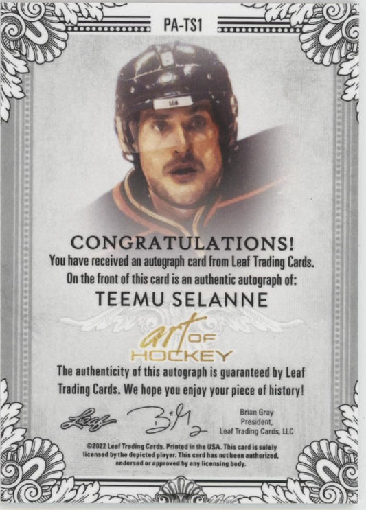 Teemu Selanne 2022 Leaf Art of Hockey Auto 26/40 #PA-TS1