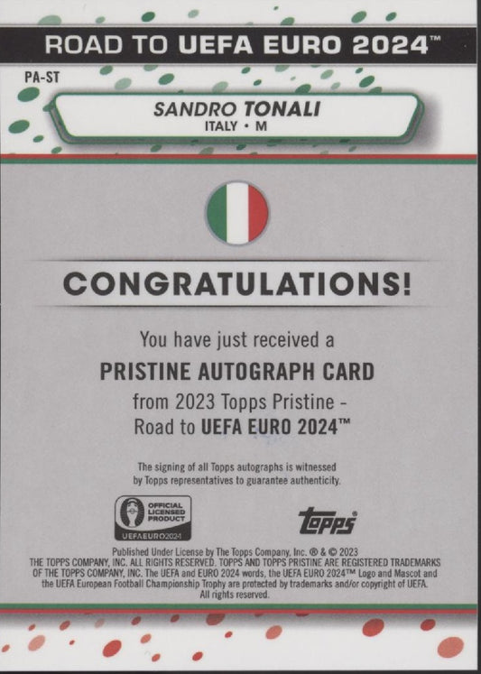 Sandro Tonali 2023-24 Topps Pristine UEFA Euro Green Refractor Auto #RA-ST