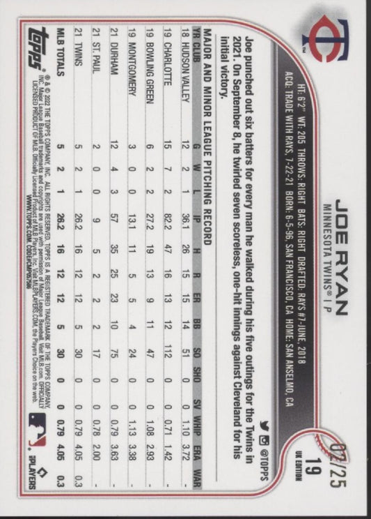 Joe Ryan 2022 Topps UK Edition Gold RC 02/25 #19