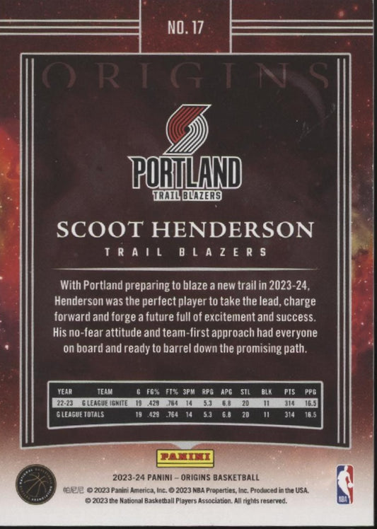 Scoot Henderson 2023-24 Panini Origins Blue RC 31/99 #17